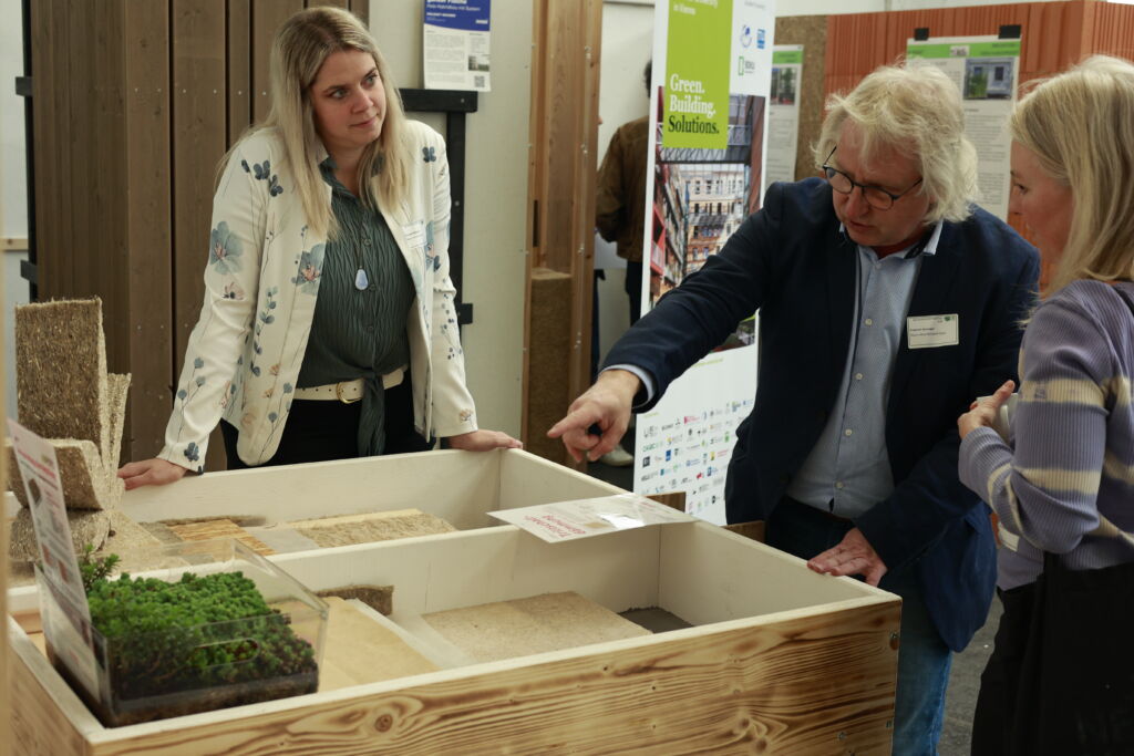 Im Programmpunkt „Argumente“ wurde es fachlich vielfältig: Aktuelle Innovations- und Forschungsprojekte zeigten eindrucksvoll, wie breit das Themenfeld nachhaltiges Bauen mittlerweile aufgestellt ist. Nach einem kurzen Pitch konnte man ins Gespräch mit den verschiedenen Projektpartner:innenn kommen und sich über den Hintergrund und die Fortschritte der Projekte austauschen. Der direkte Austausch an den Postern bot Raum für vertiefende Gespräche und neue Kooperationen.
